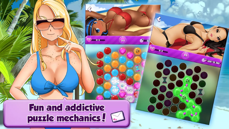 Booty Calls is a cool dating simulator with a unique puzzle mechanic in which you help mermaid princess Andriella collect all the pussy juice in town! Get to know all these hot girls, date them and then bang all of them to Andriella’s delight in this addictive adult game!